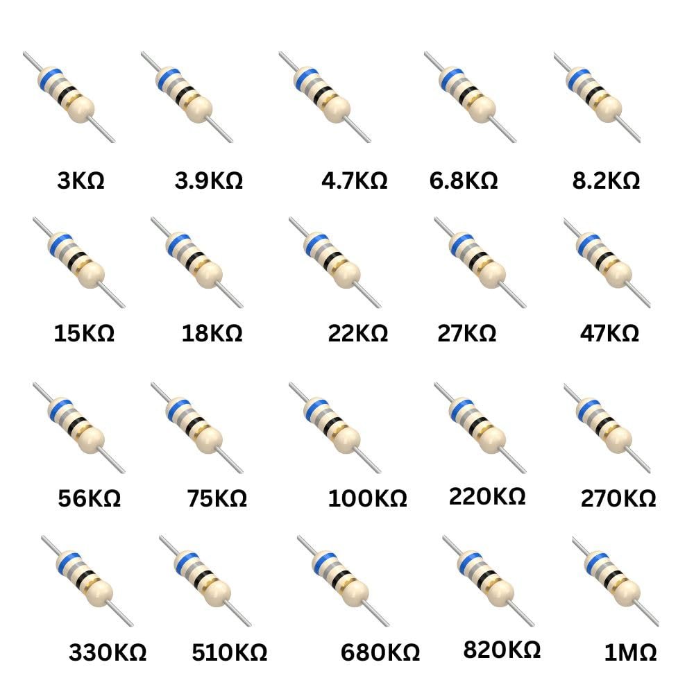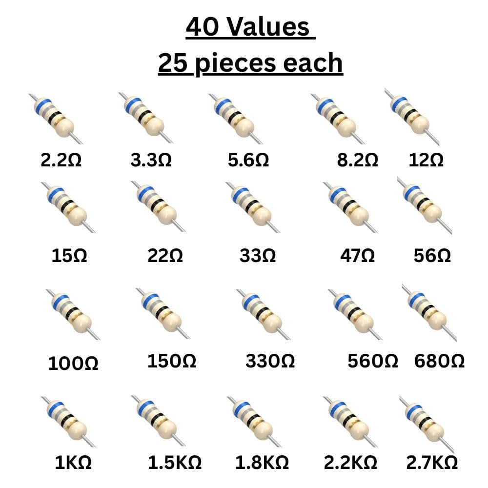 resistor kit box all value | resistor kit | resistor – 1000 Pieces, 40 Values, 1/4 Watt, 5% Tolerance