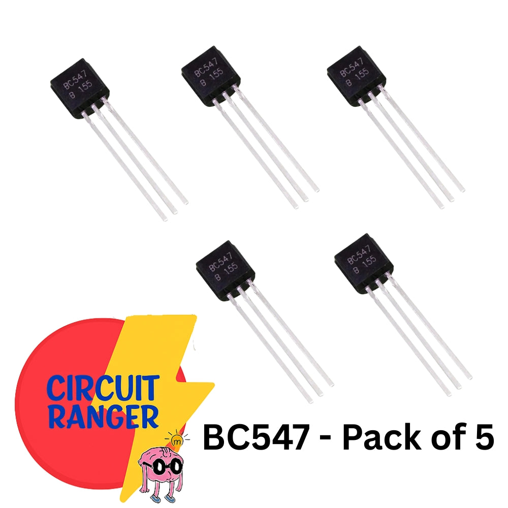 BC547 NPN General Purpose Transistor – TO-92 Package (45V, 100mA) - Pack of 5