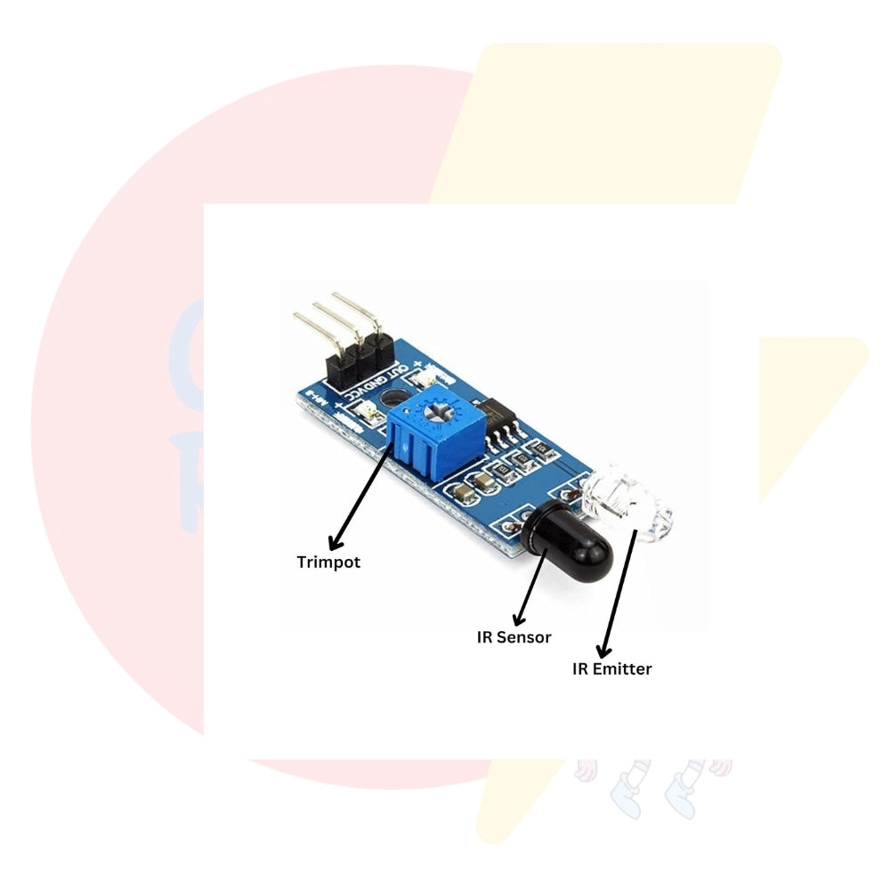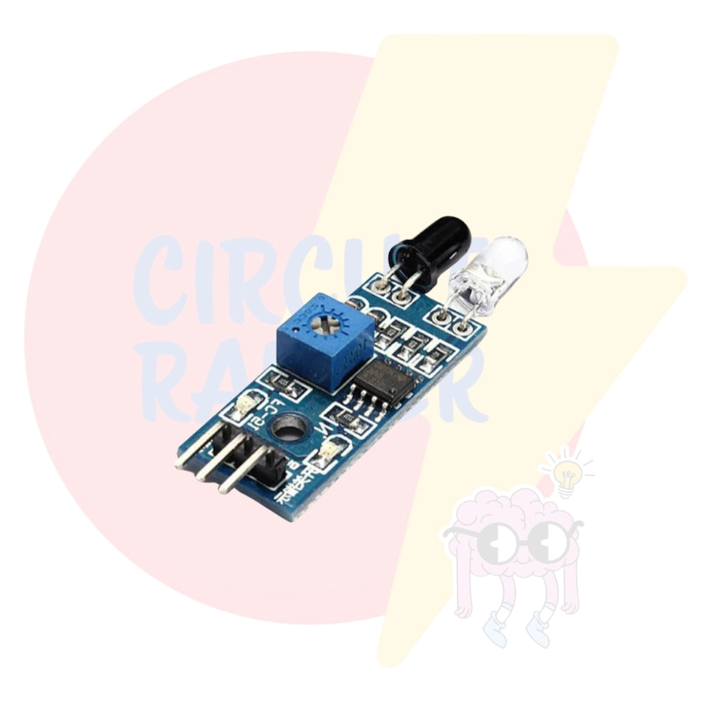With adjustable sensitivity and reliable performance in various lighting conditions, this sensor is compatible with Arduino, Raspberry Pi, and other microcontroller platforms. The module features onboard IR transmitter and receiver pairs, and it outputs a digital signal (LOW when obstacle detected), making it easy to use and integrate.
